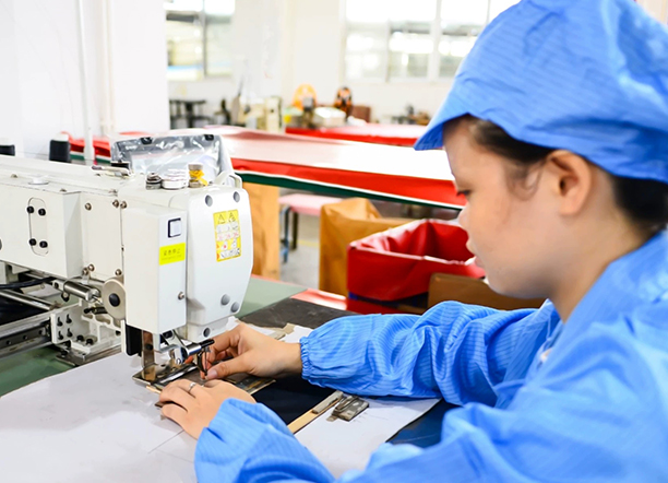 我司部门配置:研发部(板房)18人,质检30人,办公室20人,车间生产120余人。 手袋的月产量为20万到30万个。